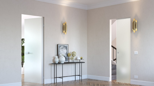 T.b.v. schuifdeursysteem Eclisse Syntesis® Line voor in de wand schuivende deuren, gesatineerd of transparant glas