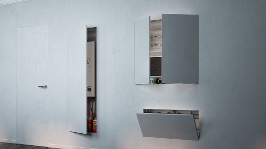 De Syntesis® Tech van ECLISSE is een onzichtbaar kastsysteem ontworpen om technische ruimtes op een esthetisch verantwoorde manier op te laten gaan in de ruimte.